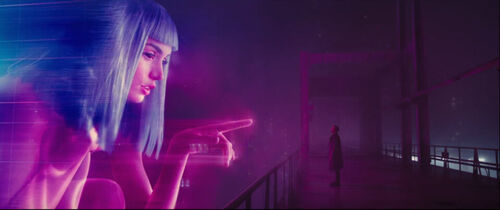 要说影片中最为科幻与浪漫的线索,无疑就是k与他的全息投影女友joi之间的剧情了。