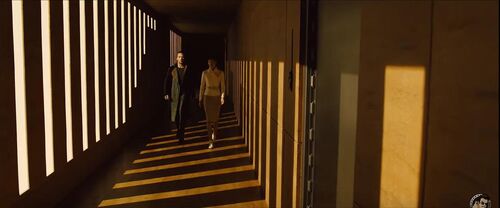 至于光暗的变化,其中尤推华莱士公司的设计,华莱士公司,尤其是华莱士的那一层,将水波与光影完美结合,个人审美原因,就是喜欢那种被切割得异常鲜明,并且随着时间而推移的光暗变化,影片中的光暗,非常漂亮。