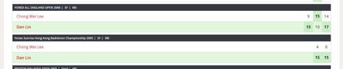 而后2005年的香港锦标赛、2006年的全英半决赛,李宗伟两度输给林丹也都有历史依据可寻: