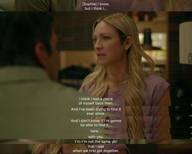 Sophie继续摊牌:“我认为我在手术之后缺失了自己的一部分,我的确在那之后努力尝试寻找了,但是我不太确定我是否能找到它……和你在一起的话。我不是我们刚刚在一起时候的同一个人了。”