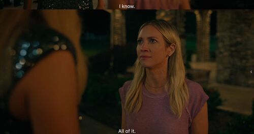 第一次飞碟射击这里Sophie成功后,Margo对Callie说:你最好小心点,she’s coming for your title,这个英文也有来取代你的意思。我觉得Callie在这里意识到指的不是打飞碟这回事,而是Sophie之于Margo那正在取代她自己的地位了。后面Club里Margo在Sophie身上喝Body Shots也是同理,因为最开始是Callie在嚷嚷喝Body Shots,说明她和Margo以前应该是互相喝的。而Callie看到Margo对Sophie喝的举动后明显的很失落。以及后续Sophie打不到Uber回家后Margo扔下Callie去送Sophie,Callie很生气说Margo你明明要送我回家的。