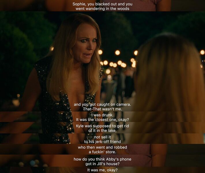 真实情况是Sophie因为在子宫手术后应该产生了严重的心理问题,她通过酒精让自己麻痹,两年前醉驾撞S了无辜路人。阶级和经济实力在,所以找了厉害的律师帮自己脱罪,同时也经历了儿童保护服务部门(CPS -Child Protection Services)的介入调查,因为车祸发生的同时被发现自己五岁的儿子Jack的儿童座椅在车上;被儿童保护服务部门怀疑其作为母亲可能会对孩子有不安全的潜在危险因素。这也是丈夫Graham在知道Sophie把枪带进家里那么生气抓狂的背景之一。