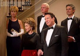 至于里根,虽然也是位看上去很亲切的总统,但从导演借剧中人之口传递的信息来看,似乎对这个外表风趣和善、内在城府极深的总统有所保留。虽然总体上是肯定的,但比起肯尼迪还是差得远。由于扮演里根的是斯内普教授,所以这个角色得到了格外多的关注。不少朋友反映其只是形似,气质仍然还是教授样子。我由于只看过两部哈利波特电影,所以感觉还好。以前看过里根演讲的视频,内容是黑苏联的段子。至少他讲段子时,风格是那种表情波澜不惊,但是嘴角微翘就透露出一股腹黑气息的萌大叔的感觉。就这一点来说,选艾伦里克曼来演我觉得还是挺合适的。