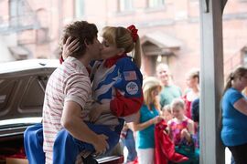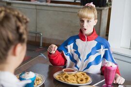 当然这样的偏激,一定需要有人来修正,或者说被人修正。影片中那个软弱风趣的父亲,在第一次将女儿送上人生巅峰后,在女儿接下来失落的余生里,从未放弃对她的关怀,而这一次,不择手段的让女儿尝试去成为体操新人的教练,就他再一次努力的证明。影片中的父女情,在充满了荒诞、粗口和搞笑之余,最终也是温馨感人的。影片中,饰演霍普父亲的老演员:盖瑞·科尔和梅丽莎·劳奇是老搭档了,两人在片中,一个只穿邮政工作服,一个只穿比赛运动服,一家子制服控,非常的有意思。