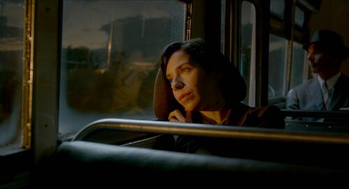 谁说,沟通就一定要用声音?Elisa是在水边被捡到的孤儿,她像是在水中出生,对关于水的一切都非常好奇:晨间在浴缸泡澡,凝视水中煮沸的鸡蛋,描摹窗户上的水滴,工作也是用水清洁污垢。影片最后,她出生自带的伤痕变成使她在水下自由呼吸的鳃,正如她对Giles比划的:我所有的人生和经历,都在指引着我和他相遇。