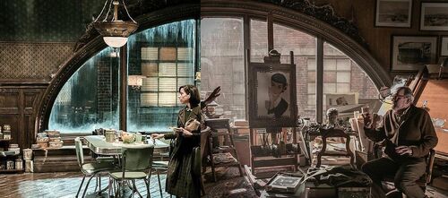 Elisa房间墙壁绘制着巨大的海浪,是葛饰北斋的代表作《神奈川冲浪里》,为了不让观众过度关注墙上的画,故意做旧隐藏在墙面中。