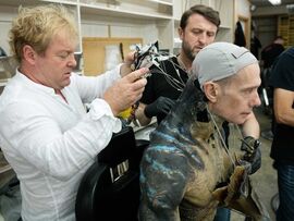 本片的怪物设计师Mark Hill说,设计人员花了好几个月的时间反复调试捏脸,确保这只鱼人有一张“主角脸”:完美的鼻子、间距恰当的眼睛、不影响颜值的鱼鳃。陀螺一直随身携带鱼人的背视图照片,以便随时向别人征询意见。——这些努力,在不解风情的人眼中只有恶趣味。