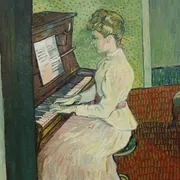 玛格丽特.加歇《至爱梵高》版玛格丽特.加歇虽然文森特很吓人,但玛格丽特被烦了一个月之后还是容忍给他做了一次弹钢琴模特,幸亏老爸也很提防这个家伙,所以就没有第二次了。其实我们都能看出她外貌根本不是文森特喜欢的类型。
