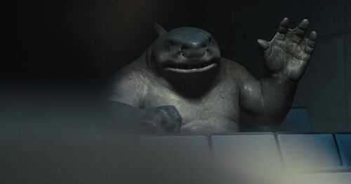 父亲是古老鲨鱼神,母亲是人类,力量强劲刀枪不入,喜好吃人,大多数时间比较安稳。第一次真人化是在剧集《闪电侠》中,此次由史泰龙为其配音。在大卫·阿耶版里,原定出场角色就有鲨鱼王,但碍于CGI成本才换成了杀手鳄。放开手脚的古恩在电影中本想使用锤头鲨的造型,但因为眼睛间距太大,拍摄起来相当麻烦,对手戏拍不好会显得很尴尬,所以作罢。鲨鱼王的动捕演员是史蒂夫•艾吉Steve Agee,他还在片中出演了没报告黄鼠狼不会泳游,被派去接管和平使者的眼镜胖John Economos。