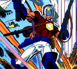 本名Christopher Smith,幼年时受父亲影响和训练,长大后成为了不惜杀戮的极端和平主义者。漫画中的和平使者有很多版本,最初的和平使者是个极端的外交家,甚至是研究武器的科学家。随着宇宙改写,他又成了曾目睹父亲自杀,常年能看到父亲幻象的精神病人,充当暴力义警。后来和平使者的历史再度改写,变成了暴力的华盛顿外交官。电影中的和平使者并无高科技武器,只是力量强大枪法过人,身着红蓝白经典制服和傻的出奇的和平头盔,暴力愚蠢版的美队。古恩最初设想该角色为毁灭者戴夫·巴蒂斯塔出演,但其没有档期而又邀请了约翰·塞纳出演,后者的演出效果非常不错,在首映礼上赵喜娜甚至直接穿了戏服现身,和电影中一模一样。为他量身打造的剧集《和平使者》会在HBO MAX上线,但古恩在脱口秀里说第二季被砍了,因为首季超预算太多。