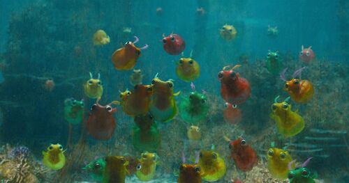 这些生物拥有大大的眼睛、毛茸茸的触角和果冻状五颜六色的身体。同时它们还长着骇人至极,仿佛电影《金刚》中峡谷蠕虫的锋利怪物口器,能把鲨鱼王这种皮糙肉厚的坦克伤得不轻。Clyrax是古恩导演的原创生物,首次出现在该片中。