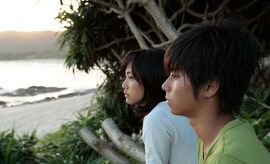 影片拍摄于奈良以南、琉球群岛的奄美大岛。进放映厅已足足迟到十分钟,恰好澄澈的海里冒出少女杏子黝黑健康的笑脸。十六岁的少年界人梗在岸上。之后俩人便共骑一辆单车沿海滨畅行,热风将白衬衫格子裙吹得鼓起来,一霎那我几乎以为,这会是个惬意的岛屿故事。
