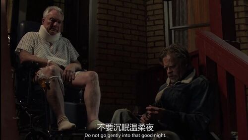 “不要温和地走进那个良夜”——这场戏老头子演得真好,曾经举起酒瓶不可一世的Frank就要老去,你以为会永远生猛下去的人,也摆脱不了受锤的命运。