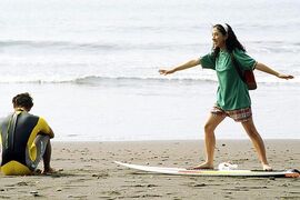 影片所讲述的故事简单得可以用“学冲浪。”三个字概括,其中也没有千回百转跌宕起伏的情节。一切发展都在意料之中,面对大海时突发的冲动,练习时屡战屡败的坚持,以及之后比赛的成功。然而这也并不是一种卧薪尝胆换来的英雄凯歌,不过寻常百姓都会经历的俗事。