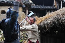 陈六由姜武饰演。他是一脸络腮胡,挥舞着大刀,看上去凶猛非常的人,实际上集勇猛、憨厚、义气、善良、可爱等特点于一身。他爱上了村里最纯真的少女,内心渴望过平静的生活。