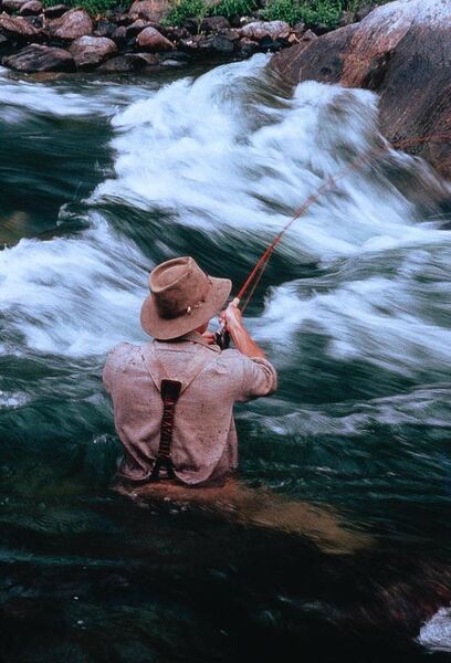 在《A River Runs Through It》(中译名《大河恋》)中,就有这样一位父亲。作为牧师,他宣称“宗教与钓鱼是一回事”,布道是在教堂传播上帝的人间福音,而钓鱼,则是在大河之上聆听上帝的自然律法。他说:钓鱼作为一种技巧是可以学习的,但钓鱼作为一种艺术是无法学习的,那需要另一种方式。