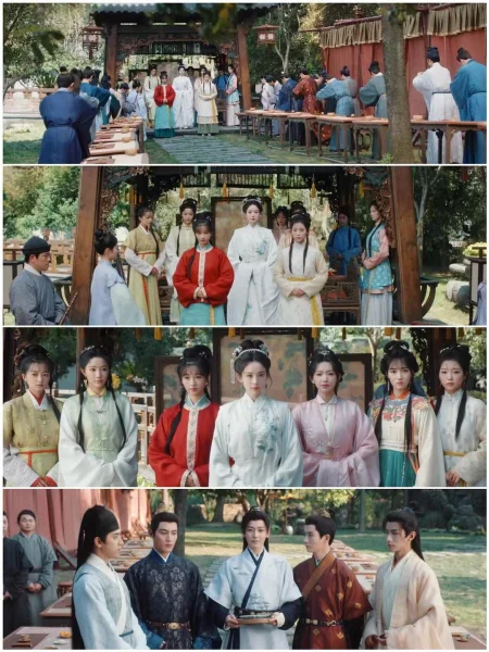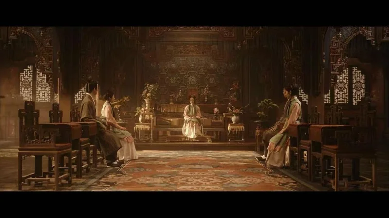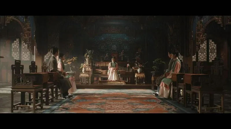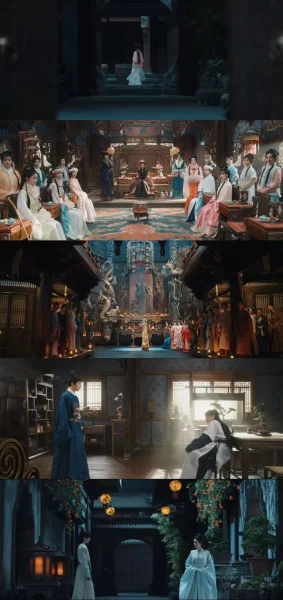 荣家故事背景设置特殊,独特的女系氏族,以女为尊,背景成立是故事开篇能成立的重要因素,我更多地思考是在画面的站位处理上,一眼便能直观地看到差异,或高低错落,或众星拱月。