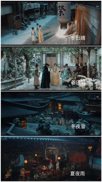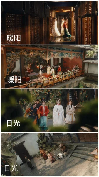 开机前夕,我们导演组和摄影及灯光团队进行了讨论,开机场地是荣家,一个延续了几百年的茶王世家,如何让它在光影交错间,呈现出繁盛的气质,是故事成立的重要一环。我们做了一些光影测试,以金调,日光调,月光冷调等不同的调性去完善整个《玉茗茶骨》的故事。下面是一些测试原片。