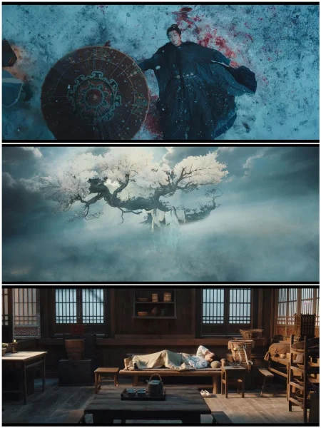 从荣善宝雪地救陆江来,到陆江来梦境里被荣善宝救起,再转场到陆江来醒来在窗边看到荣善宝的脸,我是当成“一场戏”去处理的,通过三场戏的链接,完成陆江来内心深处对荣善宝既有救命之恩,也有情动的复杂情愫。
