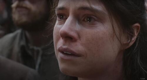 影片温柔而坚定的女性视角,从第一幕以艾格尼丝为主视点便足以可见,第二幕则更加明确:心怀艺术抱负的莎士比亚不满足于单调的乡村生活和父亲的控制,艾格尼丝理解他的痛苦,便默许他去往伦敦,自己则留在乡间照顾孩子。影片的情感基调在艾格尼丝的第二次生育时骤然转折——在倾盆暴雨中,婆婆阻止艾格尼丝到她热爱的森林中临盆,虽然艾格尼丝生下一对双胞胎,但二女儿朱迪丝在诞生时差点死去,这也为后来的悲剧埋下伏笔。在接下来的几年,莎士比亚偶尔回家探访,艾格尼丝独自抚养三个孩子。幸福并没有始终眷顾他们,在一组展现伦敦的阴郁氛围和瘟疫扩散的恐惧的镜头后,体弱的小女儿突患恶疾,但最终康复。影片艺术性地处理了哈姆奈特的死亡——在妹妹重病时,忧心忡忡的哈姆奈特躺在她的身旁,祈祷用自己的健康换取妹妹的安然无恙。哈姆奈特的去世让艾格尼丝痛彻心扉,杰西·巴克利凭借在这一场景中极具爆发力的表演锁定了影后的提名。