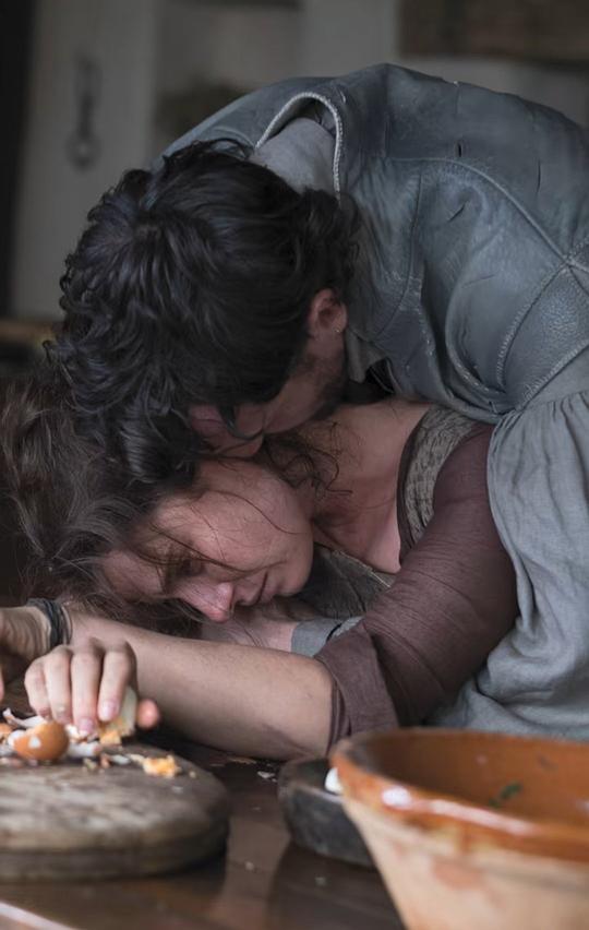 影片对原著小说进行了重要改动,将原来的非线性叙事改编为相对线性的三幕结构,循序渐进地呈现莎士比亚和艾格尼丝初见、相恋、组建家庭、面临悲剧和艺术升华的过程。在16世纪英格兰乡野的古朴光影中,年轻的莎士比亚(保罗·麦斯卡饰)以家庭教师身份结识了隐居乡间的艾格尼丝(杰西·巴克利饰)。和她的母亲一样,她天生亲近,离群索居,被村里人贬低为“怪异的森林女巫”。她超脱凡俗的灵性气质吸引了试图逃离原生家庭控制的莎士比亚,尽管受到家人反对,艾格尼丝和莎士比亚义无反顾地相恋。在静谧而灵动的氛围中,他们在乡间草地上奔跑嬉戏。时间在光影流动中悄然流逝,他们成家并有了第一个女儿苏珊娜,过着田园诗般的安宁生活。