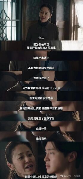 模仿犯可能是男性、使用斧头一下切断头部,并尽可能活用了现场道具,包括正对着尸身的那面镜子。在现场进行侧写的郑以信和儿子这一幕很有意思——隔着塑料布幕看不清对方的脸,正如他们虽然紧密却又如此陌生的关系,掀开布幕的老警察是提供了母子再次相见、彼此了解契机的角色。