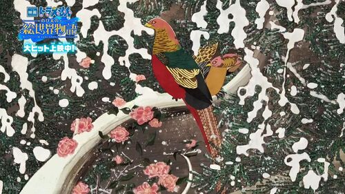 阿尔丰斯·穆夏 :《茶花女》文森特·梵高 :《星月夜》爱德华·蒙克:《呐喊》古斯塔夫·克林姆特:《生命之树》尾形光琳:《红白梅图》圆山应举:《仔犬图》、《雪松图屏风》歌川国芳 :《金鱼·百物语》伊藤若冲:《锦鸡》歌川广重:《大桥骤雨》葛饰北斋:《樱花盛开的富士山》、《神奈川冲·浪里》喜多川歌麿:《妇人相学十体》约翰内斯·维米尔:《倒牛奶的女仆》菱田春草:《黑猫》克劳德·莫奈:《撑阳伞的女人》彼埃·蒙德里安:《红黄蓝的构成》马塞尔·杜尚:《L.H.O.O.Q》加山又造:《千羽鹤》藤子·F·不二雄《哆啦A梦》