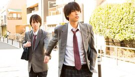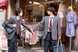 《在宇田川町等我喔!》是漫画家秀良子的作品,2014年曾获得“这本BL了不得”排行榜的第五名。电影版讲述了男子高中两个同学的爱情,高中生百濑在喧闹的涉谷喜欢上一个女生,后来却发现对方是同学八代,只不过穿了女装,百濑告白自己的感情,八代感到困惑,但两人之间的距离却逐渐缩小。百濑偶然在繁华的街道上,发现自己的同班男同学.八代穿着女装。虽然百濑觉得很困惑,但这并不妨碍他觉得八代很可爱,并且喜欢上他。另一方面,被百濑发现自己的兴趣后,八代决定要放弃穿女装,但是百濑率直的夸奖和喜爱,让他不由自主地沉溺在百濑的感情当中,无法自拔。在百濑的支持之下,八代重新穿上女装,展开与百濑之间的另类恋爱。