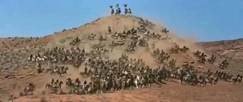 这并非剧组真的受到诅咒,而是著名制片人霍华德·休斯(电影《飞行家》原型人物)为拍出蒙古大漠风光,将外景地选在美国犹他州沙漠中的雪峡谷——