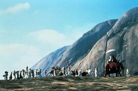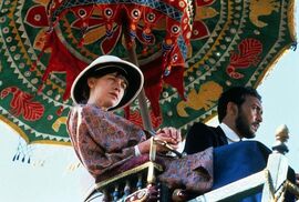 马拉巴山洞的隐喻:在混乱的孤独的背景下,逼仄压榨的空间反而成了情感的宣泄与突破口。《印度之行》里,大卫里恩除了拍出那些洞窟中怪异恐怖的回声现象,并没有对岩洞内部给予丝毫镜头(比如片头那些斑斓的壁画)。导致在葛丝小姐对阿齐兹医生提出指控后的很长一段时间里,我一直在困惑究竟她在洞窟中看到了什么使她产生幻觉。摩尔太太对回声产生排斥的心理效应,而葛丝小姐一开始并没有,她在山脚下的洞窟中尚显得镇定且兴味盎然。她的变化是从登上山顶开始的。疲惫中的她接受了阿齐兹的援手,当两人肌肤相触的一刻,葛丝的表情奇怪而迷茫。此时她突然问起阿齐兹的婚姻和他的妻子,询问他的婚姻中是否存在爱。这些不合时宜的探问隐晦地揭出了葛丝的心理状态:对爱的不确定、左右摇摆到她发现她其实并不爱朗尼——Nigel Havers扮演的殖民地地方法官。尔后当她进入山洞,划燃一根火柴后,整个故事最诡异的一段发生了。阿齐兹在洞口焦急地呼唤她。听到回声的葛丝像发疯一样冲下了山顶,仓皇而逃,不顾被仙人掌刺得鲜血淋漓。随即她便控告可怜的印度医生意图不轨。由此看来,不管洞窟中有什么,所有的祸事都是从这趟参观山洞之旅引发的。这趟旅行专为两位贵宾筹备,但首先是摩尔太太出了状况,留在了山脚下,然后是葛丝小姐大受刺激。马拉巴的幻觉究竟是单纯的文化器质上的水土不服的总爆发,还是有更深层的寓意呢?葛丝在丛林中见到的表现情欲交欢场面的神像群又起何作用?还有那群追赶葛丝的野猴?这一切都显示了印度这个神秘异域在外来的英国人眼中的怪异、不可理解与由此而引发出的恐惧、排斥感,同时还伴随着内在文化心理与习性遭受到的冲击?不断闪回的雕像神情与姿态竟使葛丝在马拉巴回声的恐惧中产生了不可思议的幻觉:阿齐兹图谋强暴她。对于克制保守的英国人而言,这样的幻觉脱离了本性,显出异化特征。应该注意到,葛丝在前往马拉巴的旅程中是处于一种不稳定的心理状态下。异域的不适感加剧并最终激发了这种心理效应。葛丝发现自身在印度是孤独的,不只与印度人的交流存在各种困难,甚至与至亲之人也存在无法沟通的隔阂。她身处的整个土地对她而言怪异又充满无法接受的心理暗示。当她在法庭上宣布撤销对阿齐兹的控告后,她又被英侨会抛弃了,真正从心理上的孤独无依转化为现实中的孤独无依。