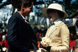 阿齐兹是另一个比较引人深思的角色。在影片的绝大部分时间里,他穿西服,说英语,力图和英国人来往,言谈举止谦卑恭谨,甚至可说小心谨慎,惟恐丁点令人不适,面上时刻挂着过分热情乃至有些谄媚显得尴尬的笑容,英国人的一点友好表示就往往令他受宠若惊。这个印度医生反映了作为殖民地的印度,它的一部分人民对作为宗主方的英国人所怀有的心态,既戒备敌视,又不免对他们的精英文化生活深怀效慕之心。然而经过马拉巴事件后,阿齐兹的希望破灭,他脱下西服,换上了印度长袍。他深深认识到这种不平等交流的不可行,他最终不可能变成一个被英国人接纳的英化印度人。他只能做一个纯粹的印度人,而不能站立在两者之间。他一改往日温顺的面目,对前来劝说他的菲汀怒吼,指责他到底还是偏向本国人,但善良是普遍人性中的一部分,他最终还是放弃了对葛丝的追偿权。