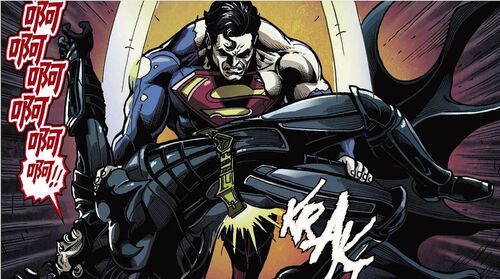 当日本捕鲸船捕鲸鱼时候遭到海王的亚特兰蒂斯军队攻击,而当正义联盟和亚特兰蒂斯发生争执的时候,老爷正在和不义超理论小丑到底该不该死。这时候不义超也赶到现场,不义超马上威胁海王停止进攻人类捕鲸船。而海王咄咄相逼不让步,这时候不义超,神奇女侠,沙赞,绿灯侠四人合力将亚特兰蒂斯放在沙漠里,亚瑟不得不让步表示妥协。不义超的干涉人类行为遭到了部分人的反抗和街头示威,遭到了不义超和神奇女侠驱散,并且不义超打算在哥谭阿卡姆疯人院动手,杀一儆百,达米恩马上表示拥护不义超行为,和老爷立场不一致。老爷不得已用病毒干扰了钢骨,小丑女为了报复不义超,释放所有阿卡姆疯人院罪犯,制造混乱。达米恩突袭夜翼,实际上夜翼死于石头撞击,老爷精神世界彻底崩溃,同不义超决裂。
