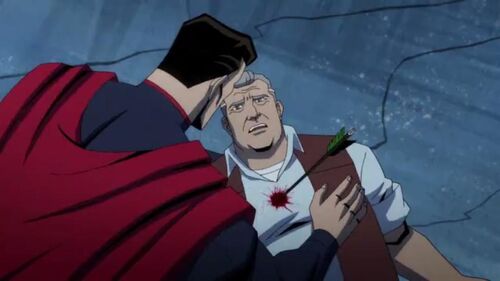 在动画里,肯特父亲是被绿箭箭头误伤到死亡,而漫画里,这并没有导致致命的伤。