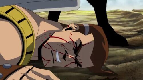漫画里绿箭侠因为原子上校的轮番攻击,导致孤独城堡出现坍塌,困在里面,而不义超是拿拳头活活打死绿箭侠,直到肯特夫妇吃下超人药丸后,才停手,动画绿箭侠的死法可谓把游戏剧情沙赞的死亡移在了绿箭侠身上。