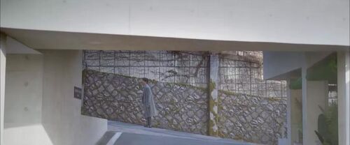 多情和蔡俊常常不同框、或是被什么东西分割。如上图画面被一根杆子分成两半。或是面对面说话时,只拍单人镜头,把对方用墙遮住。一眼看上去蔡俊好像面壁思过一样······