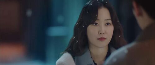 第2集结尾出现了惊人的反转,首集开头坠楼的正是男二蔡俊!男主朱英道成为了命案现场的目击证人。剧情越来越令人迷惑,这到底是一部悬疑剧还是浪漫治愈剧?男二怎么可能在第二集死掉?后面他又会以什么形式“复活”?结合上集分析,女主多情的确对追求她两个月的蔡俊动摇了。她跟妈妈的通话中提到,没有喜欢到迫切地想谈恋爱的程度;拒绝他时也说,这样的追求令她一下贪心一下害怕,很有负担,虽然想要幸福,可现在的自己好像很难改变。是一种很矛盾的感情,把已经丢掉的花捡回来放在床头;一下要弟弟告诉她一下又不要,最后还是去了。因为下雪,突然想起了他说过的下雪的夜晚吃橘子看电视的话,我自己理解是她其实没那么喜欢蔡俊,但又想要幸福,习惯了他一直追着她的感觉,他突然不在心里空落落的。从蔡俊的角度是“欲擒故纵”,又是跟咖啡馆朋友告别、又是去她弟弟酒吧,故意留下线索希望多情能主动找他。两人见面时的镜头也很有意思,蔡俊的画面,他前面是柔和的暖黄色调、背后是冰冷的蓝色,如同他本身,有着健全的人格面具,其实患有反社会人格障碍,经过理性计算、模仿才能向常人一样表达情感。