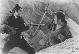 虽然后来证明出卖他的其实是那个寺庙的朋友,但因为他跟座头市语言不通,误会无法解除,两人对决,座头市杀了独臂刀。