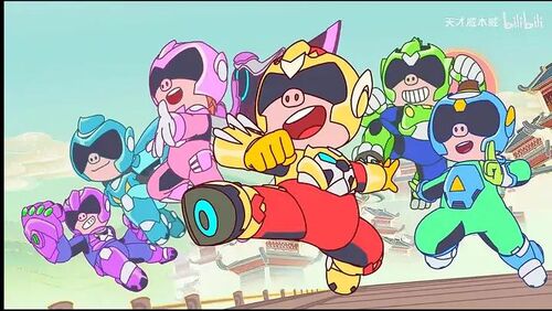 其实这就是《超星五灵侠》第五部之后的固定搭配了。 又有猪猪星,又有武林星。