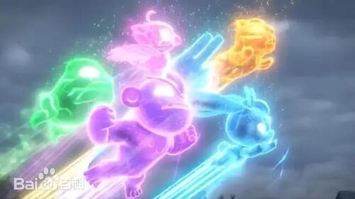 在战斗的过程中,大家才发现,原来琳琳就是第六音符(她还有一个乐器“埙”,六个孔,你就说巧不巧,团队正好六个人),这个时候电已经只剩下不到10分钟了,终于给出了一个超级酷炫动画特效,老一辈的猪猪侠背影也重新出现在眼前,在6个人齐心协力使出彩虹合集之后,就是大团圆结局了,胜利结算画面。