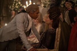 One of the major issues is that the script aridly makes a meal of Joseph’s interpersonal relations with members of the opposite sex to ginger up the insipid plot. For anyone who is equipped with adequate common sense, it pans out without any tact and surprise. To make matters worse, every female character is conceived only to counterpoise Joseph’s remarkable virtues: Madame Guimard (Driver) is vengeful because she is offended for failing to have her way with him; Joseph falls into disfavor is because Marie Antoinette (Boynton, breaking a sweat to compose herself as royal breeding is not in her element) backpedals and pulls the rug out from under first; even Marie-Josephine (Weaving, dismally miscast in period fineries), with whom Joseph engages an extramarital affair, is too craven to start a life anew with a black man, and is partially responsible for a dastardly infanticide. Even Joseph’s mother Nanon (Adekoluejo) fits right to the “magic negro” trope, dignified by her suffering and judgmental of Joseph’s deviation from his root. When she gives his son a piece of her mind, you can bet it is the nuggets of subsisting in a vastly unjust world.