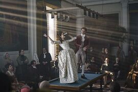 A peer of Mozart, the before-title introduction scene pits Joseph (Harrison) against Mozart (Prowen) in a cadenza duel and ends up with Joseph upstaging the latter, A fanciful artistic license to imply that if we live in a just world, Mozart would’ve been called “Black Bologne” and not the vice versa. It might be too big a stretch, but it is imperative to do impelled by the necessity of rectifying past wrongs and empowering the repressed and mistreated, which is also something very easy to error on the side of for any artistic creation.