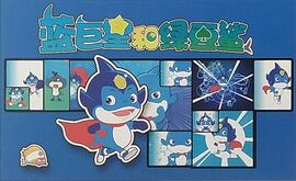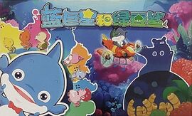 居住在寒冷可怕的沉船里的绿豆鲨和他的手下招财、进宝一心想霸占美丽的珊瑚村,并吃掉珊瑚村里的鱼类居民.幼年就被千年老龟—龟博士从外界带回珊瑚村的小蓝鲸,是个可爱、善良的小孩,面对绿豆鲨和他手下的凶暴,小蓝鲸在吃了一种有营养的海洋食品海苔后就会变成力大无穷的蓝巨星,赶跑绿豆鲨及手下,恢复美丽的珊瑚村的安宁。