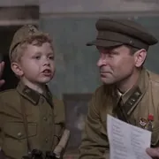 谢尔盖在部队里得到了医疗照护,有人为他缝制了一套合适的军装。沃罗比耶夫少校没有成家,他很在乎这个男孩,决定正式收养他。少校不愿意把谢尔盖送到孤儿院,他觉得男孩跟在他身边反而会更加安全。小谢尔盖特别喜欢一位护士阿姨,在一次跟父亲谈话时,他说希望这位阿姨能成为他的母亲。而少校则从善如流,很快娶了这位护士。小谢尔盖把自己看作是爸爸的助手。他不直接参与战斗,但每天早上都会去总部报到,领取自己的任务。他主要负责向各处传递消息、送报纸和信件。在战斗中,他还为士兵们送水和弹药。