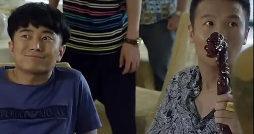 浩哥不认识龙头拐杖,当成纪念品拿走。