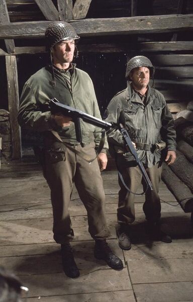 由凯利而始,影片接下来的走向愈加荒诞,也引出了一批不着调的参与者,这些人都以各自的角度将战争的严肃性和神圣性消解化。我们看到,炮兵指挥官可以为了分的一杯羹,竟然私自调动炮火掩护凯利等人;负责军需的军官,在得知有获得金条的机会后,一改外表的原则,不但协助调配军火,还根据黑市金价计算收益,作为股东要亲自参与行动,俨然一个独立董事;而凯利的直属长官开始极力阻止这一疯狂的行动,但是在凯利唆使部下纷纷参与这场淘金之旅后,也同意参与,他看似面露难色,其实也不过是就等着部下拥戴,“黄袍加身”般的台阶下;更有趣的还是那个看起来吊儿郎当不着调的坦克手和他的部下们,他们看起来更像一群海盗,开着两辆破坦克在二战战场上探险夺宝,而凯利人尽其才的将他们招揽也让这次探险更具喜感;而坦克手又在后面求助时,找来更大的一批军乐队要来利益均沾,看看吧,战争中的这些人都是什么鸟,他们几乎涵盖了一场战争的各个部门,各个环节,后方炮火、军需、主力部队、散兵游勇、机动部队,乃至军乐队。大家都可以因为一条可以让他们暴富的信息,抛开二战激烈的正面战场于不顾,要来一次抽奖似的休假,战争算个球,谁也别装B,在其中更添一份荒诞的是,死守银行的德国坦克兵们,在顽强战斗后,也瞬间想通了,竟然与盟军和解,带着金条全身而退,这群人表现的贪婪、玩世不恭与疯狂,对战争把玩可谓出神入化。