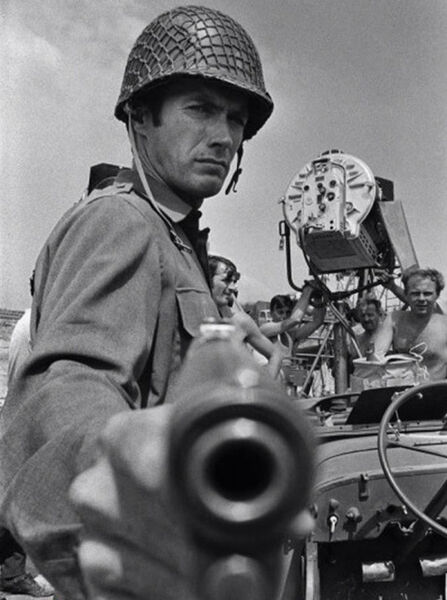 对我个人而言,观看本片的一大理由还是看克林特•伊斯特伍德的英姿,在我看来,演员时代的克林特•伊斯特伍德可以分为三段,一段是西部牛仔的酷劲,一段便是二战电影中的孤胆,接着便是城市中“肮脏哈里”的决绝,接下来就是更传奇的导演生涯。而《战略大作战》就是伊斯特伍德在二战电影时段的精品,故事的开始还有些传统战争电影的样子,炮火连天,同时是军官的咒骂,伊斯特伍德扮演的凯利抓获一名纳粹军官,看他出场一副淡然冷静的老兵模样,又很有西部牛仔时期的冷峻面容。接下来故事就开始向娱乐化方向发展了,凯利从军官口中得知德占区的银行有大批金条,于是开始一副冷峻样的凯利,突然又冷峻的打起了这批金条的主意。凯利在片中是个很有意思的角色,他始终在气质上显现一副正派的形象,但是却在玩忽职守,前去抢金条一事上最为决绝,作为战斗英雄,他的这种态度可谓对战争的最好讽刺,而整部影片下来,你竟然很难对他生出这是个贪财的家伙之感,反倒认为在这莫名其妙的战争中捞上一笔才是王道。