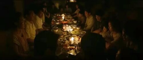 朝鲜大使馆已遭到袭击,姜信盛提议一起去韩国大使馆等待。当晚他们对坐用餐的场景,大概就像电影里描绘的那样,尴尬而别扭。