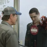 人与人之间,差别并没有那么大,只是我们信仰的东西不同罢了。剧中的人物可以分为两类,信仰自己的和信仰别人的(这个别人包括除自己之外的一切力量)。一般状态下,我们都信仰自己,尤其是在美国这样一个强调自我的国家。于是当灭顶之灾从天而降时,人们最初的反应还是想依靠自己的力量一探究竟,所以男主角的黑人邻居带着一群人出去送死了。但当死亡面目狰狞地接踵而至时,人们的自信粉碎了,一部分人开始把希望寄托给别人,听凭别人为自己的生命做主。疯婆子正是抓住了这样的机会建立了自己的邪教组织。正如那个威猛爷爷所说的:“你只要能把人吓到一定程度,让他们干什么都行,他们会投靠任何能给出解决办法的人或东西。”这方面最典型的例子就是那个蓝领工人,一开始他自信满满,在和男主角争辩该不该出去修排气扇时还趾高气扬。被吓得半死之后立刻对男主角唯唯诺诺,不仅因为他错了,还因为他觉得男主角可能是救星。他本来恨不得要暴扁疯婆子,去药店被吓到极致之后却成为她最忠实的走狗。他就这样从听命于自己的意志,到听命于男主角,最终听命于貌似可以救他的疯婆子。(ps:我觉得虫子不咬她是因为连虫子都嫌弃她)而与他相对的,男主角始终信仰的都是自己,虽然挑战应接不暇,死亡阴云难散,但他始终积极主动地在做一些事,不管是在营救别人,商量计划,安抚弱者还是对付疯婆子,他都一直在做,而只要在做事,尤其当有一部分群众支持和信仰他,他就会产生一种模糊的安全感,认为对于命运他并不是毫无控制权,对于灾难他不是毫无还手之力。他的这种安全感给他一种潜在的希望,也给观众一种潜在的希望,于是我们把赌注押在他身上,赌他会是最后胜出的英雄。