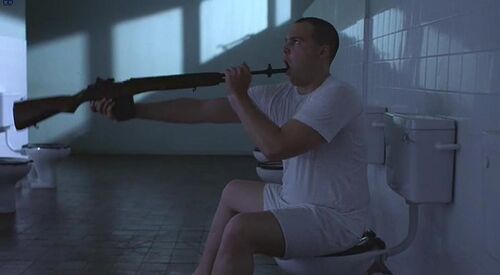 这些故事上的改动,破坏了纵深性的景面错落并维持了景面的统一。在删除新兵训练段落之后,这群年轻人被迅速抛到战场上,一种震撼性突如其来,但它并不可信,也不实在,因为它缺乏了原著当中最重要的“心理现实性过渡”,而这番过渡,恰恰是库布里克《全金属外壳》前半段的精髓,始于比尔的格格不入,终于他的吞枪自杀,这番悲剧让新兵登陆越南的经验变得连续和自洽。