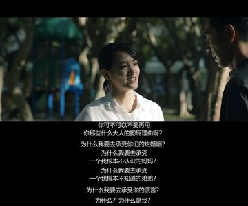 她的女儿小静也不得不比其他人早点成熟起来。影片只有一次她几欲爆发出来,那是她对父亲说的:“为什么我要去承受你们的烂婚姻?为什么我要承受这样的人生?为什么是我?”然而这短暂的几秒钟并没有带来什么改变,死气沉沉的生活仍是泛不起一点涟漪。现在的小静,高中还没毕业就要独立起来,替妈妈做决定,照顾妈妈,以后的小静只会更懂事,懂事得讨人喜欢,直到有天她做出让人“意外”的事情而被评头论足:“怎么好好的人会变成这样子呢?”